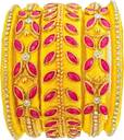 Yellow With Pink Stylish Silk Thread With Stones Decorated Bangles for Women and Girls for Festivals (5 Pcs) - Yellow With Pink