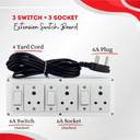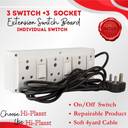 JELECTRICALS 3 Socket and 3 Switches Extension Cord 3 Socket Extension Boards (White, 1.5 m)