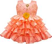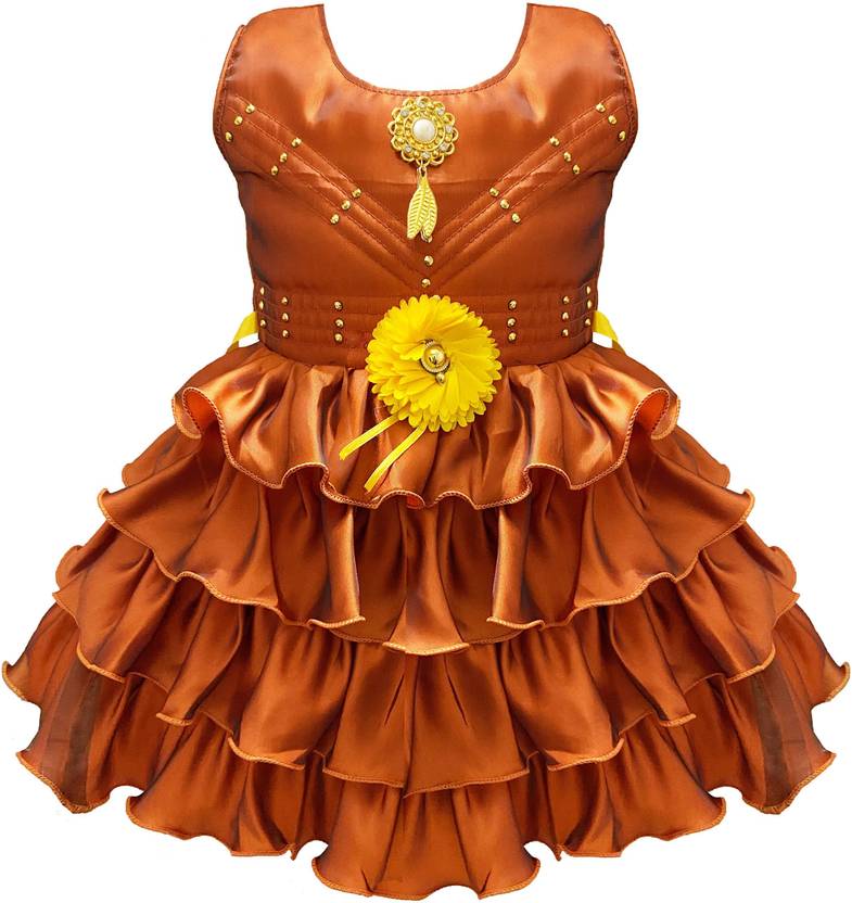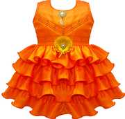 JELLY GARMENTS Baby Girls Midi/Knee Length Festive/Wedding Dress (Orange, Sleeveless)