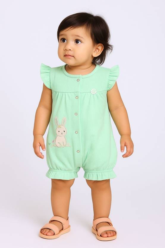 Jelly Joy Romper For Baby Girls Casual Applique Cotton Blend (Green, Pack of 1)