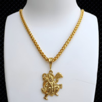 Jemeefly New Hanuman ji pandal Locket with Chain for mens and boys. Gold-plated Alloy Pendant Set