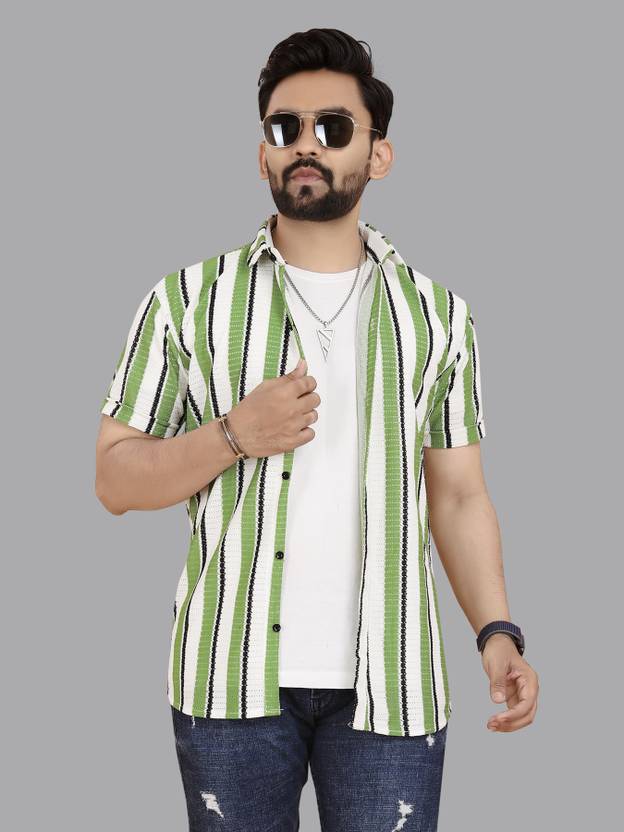 JENNIE FASHION Men Self Design Casual Light Green Shirt
