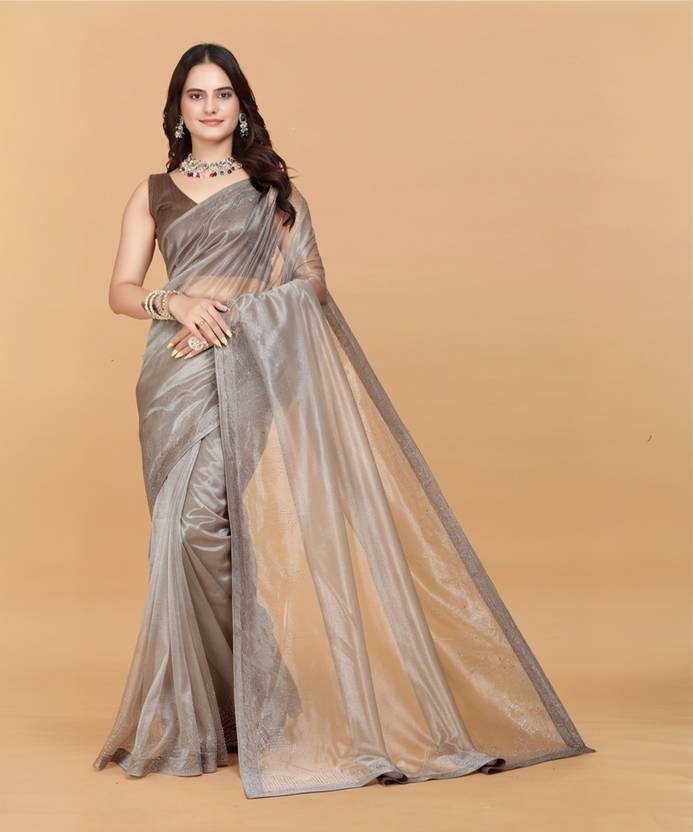 Zeekha Self Design Daily Wear Net Saree  (Grey)