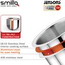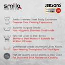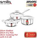 Jensons Smilla Triply 18/8 COMBO Food Grade Stainless Steel Kadai 20 cm/ Fry Pan 20 cm & 18 cm Patila with STAINLESS STEEL HEAVY LID Induction Bottom Cookware Set (Stainless Steel, 3 - Piece)