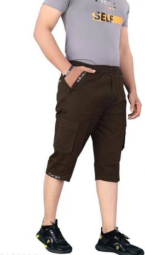 Solid Men Brown Cargo Shorts, Denim Shorts, Regular Shorts