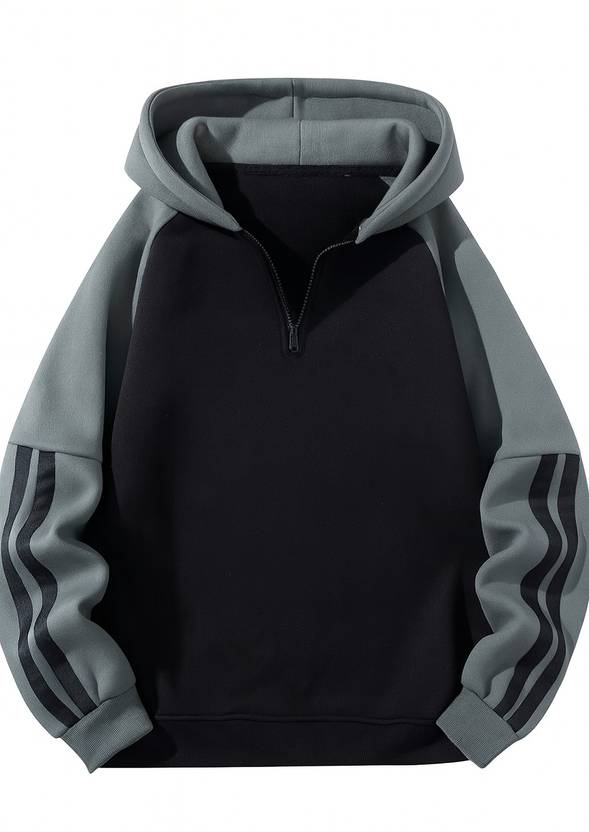 Men Full Sleeve Color Block Hooded Sweatshirt
