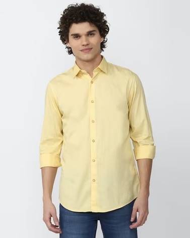 Step into elegance with this Men’s Solid Light Yellow Formal Shirt, crafted for comfort and class. Made from premium cotton blend fabric, this shirt offers a smooth texture and wrinkle-resistant finish, ensuring you look sharp all day. It features a classic collar, full sleeves, and a chest pocket, perfect for office wear, meetings, or formal occasions. The slim-fit design enhances your physique while maintaining a refined look.