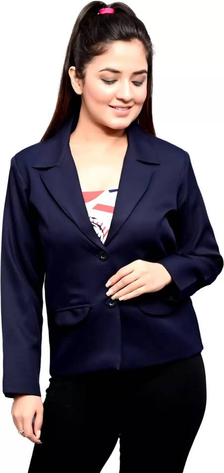 Women Solid Single Breasted Casual Blazer (Blue)