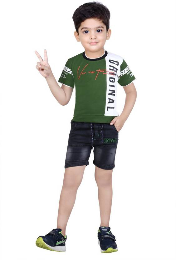 Baby Boys Casual T-shirt Shorts (Olive Green)