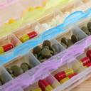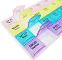 The Weekday Multi Pill Dispenser is ideal for people who take large numbers of tablets throughout the day at regular intervals. Provides 7 trays for a full week of pills and tablets (Sun, Mon, Tue, Wed, Thu, Fri, and Sat). Each tray features four compartments (Morning, Afternoon, Evening, and Bedtime) in text.
