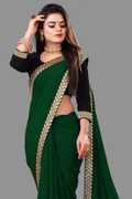 Style: Solid/Plain Saree With Heavy Lace Border, Saree Fabric: Georgette, Blouse Fabric: Art Silk, Saree Length: 5.5 mtr, Blouse Length: 0.8 mtr, Saree Pattern: Embellished Saree, Season:- Daily Wear Or Any, Occasion: Wedding, Festival, Bridal, Party, Causal, Contains: Single Saree with Unstitched Blouse Piece