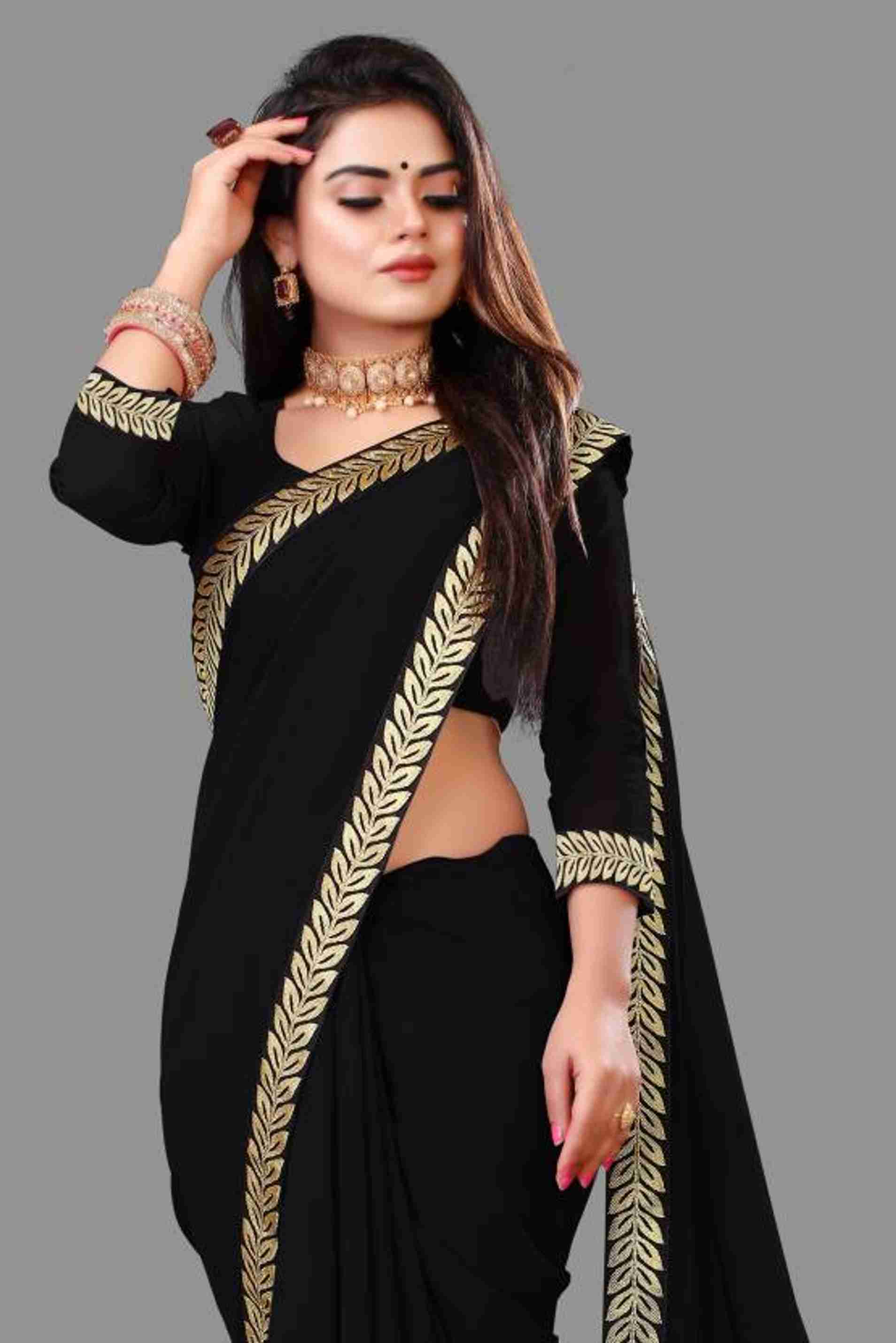 IT brings you most pretty and trending saree.This saree Crafted from quality georgette, this saree offers a luxurious feel while maintaining the comfort essential for long wear and comes with an unst...more