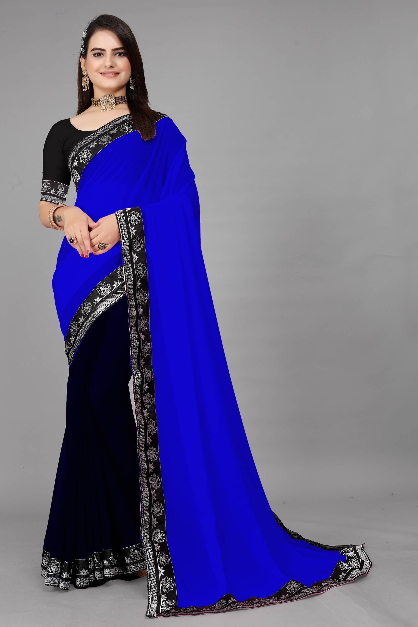 Elegant Two-Tone Georgette Saree with Exquisite Lace