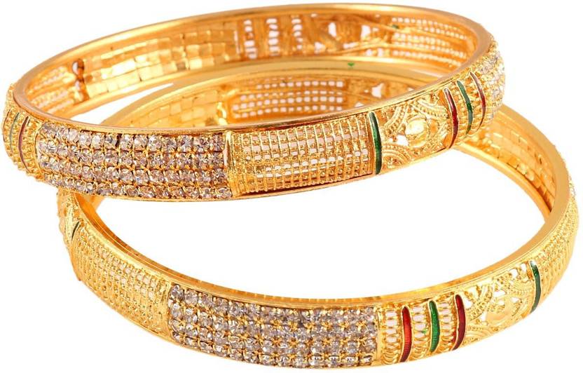 Jewar Mandi Brass Cubic Zirconia Gold-plated Bangle Set