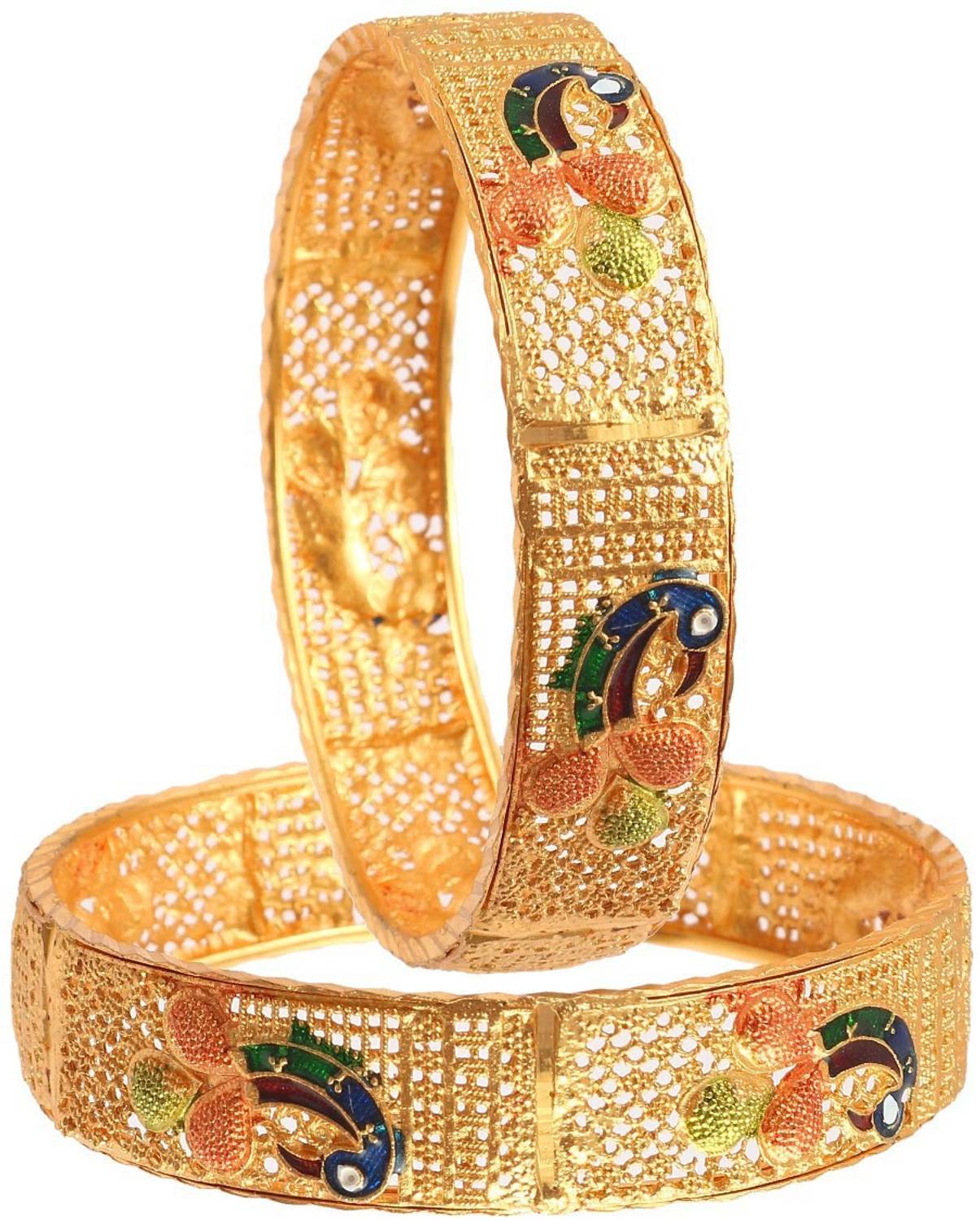 Jewar Mandi Brass Gold-plated Bangle Set (Pack of 2)
