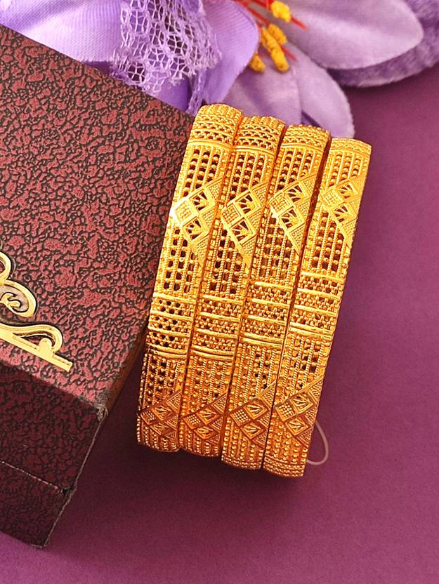 Jewar Mandi Gold Plated 4 Piece Bangle Fashion Net/Jaali Design Handmade Work Daily Use Jewelry for Women & Girls