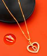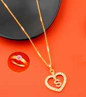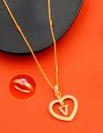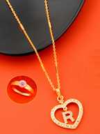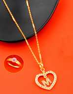 Jewel WORLD N name letter Diamond Pendant locket chain with letter ring for girls & women Gold-plated Beads Alloy Pendant
