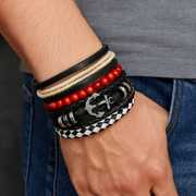 Add a bold nautical charm to your style with this Beaded Design Leather Bracelet. Crafted with durable leather and vibrant red beads, it features a stylish anchor charm symbolizing strength, stability, and adventure. Lightweight and comfortable for daily wear, this bracelet blends casual elegance with a rugged masculine touch. Perfect for men who love unique accessories, this bracelet is ideal for casual outings, parties, or gifting.