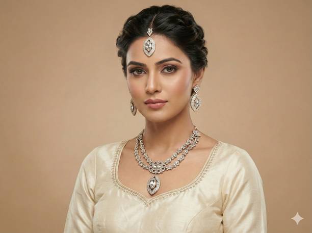 - Gorgeous Necklaces: Explore Kundan jewellery like a choker set, ornaments with crystal embellishments, and classic layered necklaces.