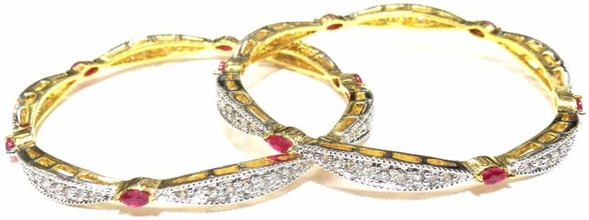 Cubic Zirconia (CZ) Diamond looking Bangles Set.Micro Gold And Silver Plating Used.Wear This And You Will Be The Centre Of Attraction Of Any Event. High Class jewellery from Jewelshingar.Latest New Design Fashion Jewellery.