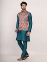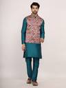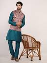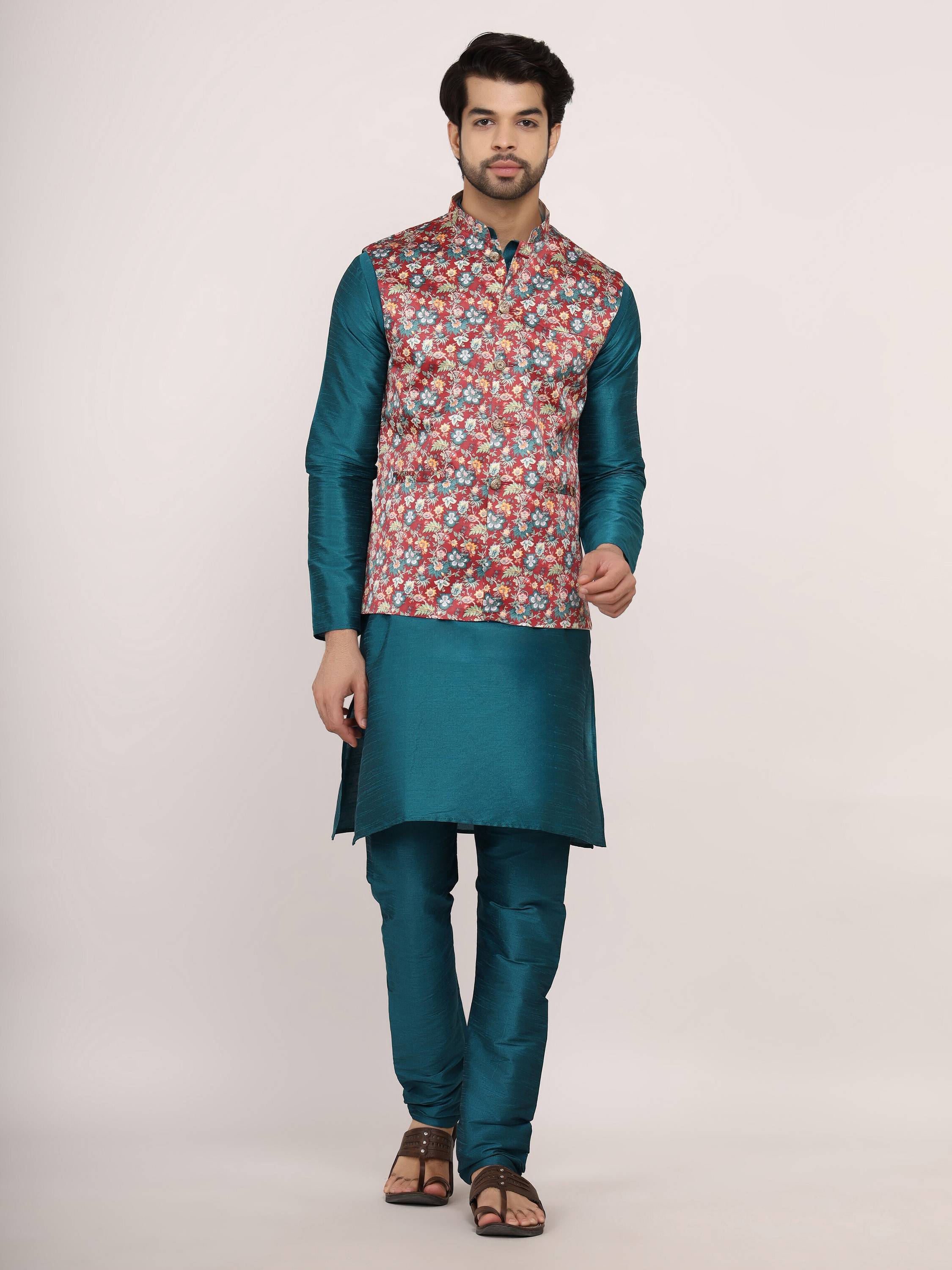 A kurta pajama paired with a Nehru jacket is a classic and stylish ensemble that blends traditional Indian attire with a touch of modern elegance. The kurta is a long, loose-fitting tunic that typically reaches below the knees. It is made from Dupuion SIlk Kurta Pajama and Satin Fabric used in Nehru Jackat. The pajama, also known as pyjama or churidar, is the bottom part of the attire. It is usually straight-cut and loose-fitting, providing comfort and ease of movement. Named after Jawaharlal Nehru, India's first Prime Minister, the Nehru jacket is a sleeveless, hip-length jacket. It is typically tailored with a mandarin collar that stands up straight, distinguishing it from Western-style jackets.Together, the kurta pajama with a Nehru jacket creates a polished and sophisticated appearance suitable for formal occasions such as weddings, festivals, or cultural events.