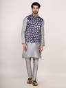 Men Silk Blend Kurta Pyjama Ethnic Jacket Set