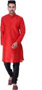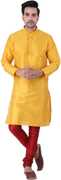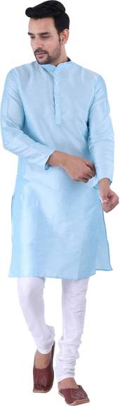 SADREE as a brand brings you quality and affordability. We take pride in our commitment to maintain quality standards in each piece manufactured by us. Look your ethnic best wearing this kurta pyjama set for men from the fashion house of SADREE .Made from Dupion Silk, this regular-fit kurta pyjama set comprises a full-sleeved kurta and pyjama to complete your look. Team this outfit with embroidered mojris and rock the party that you attend.