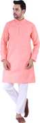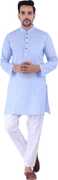 JEXI offers this pure trendy kurta which is a perfect addition to the trendy guy wardrobe. Featured with contrasting threads at the button holes and buttons this is indeed the stylish man first choice. The chinese collar and half sleeves with roll-over flaps, and the cotton fabric makes a comfortable wear for a long-outing.