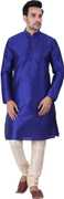 SADREE as a brand brings you quality and affordability. We take pride in our commitment to maintain quality standards in each piece manufactured by us. Look your ethnic best wearing this kurta pyjama set for men from the fashion house of SADREE .Made from Dupion Silk, this regular-fit kurta pyjama set comprises a full-sleeved kurta and pyjama to complete your look. Team this outfit with embroidered mojris and rock the party that you attend.