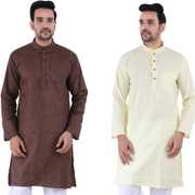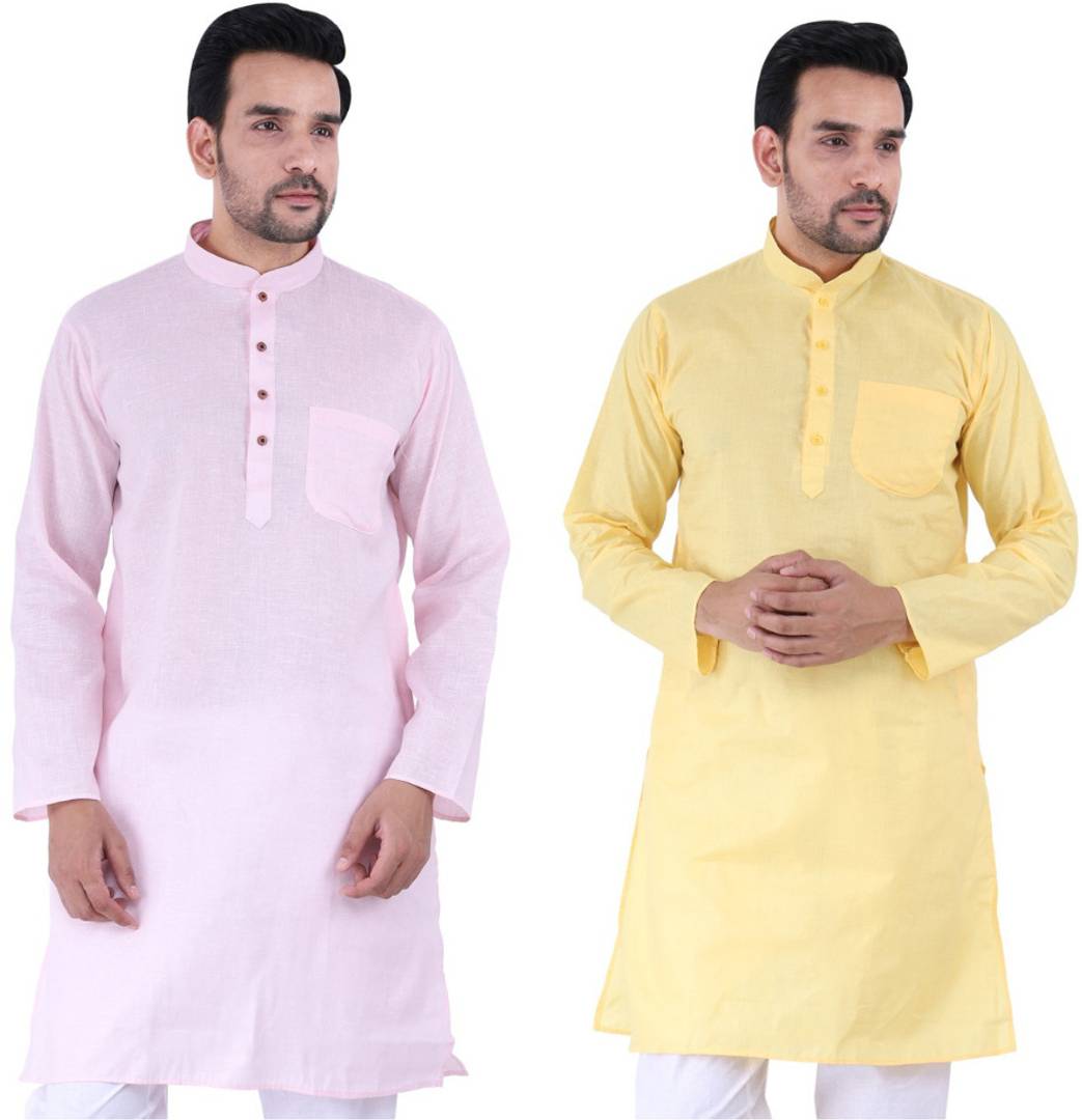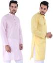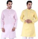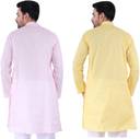 Sadree Pack of 2 Men Solid Cotton Blend Straight Kurta (Pink, Yellow)