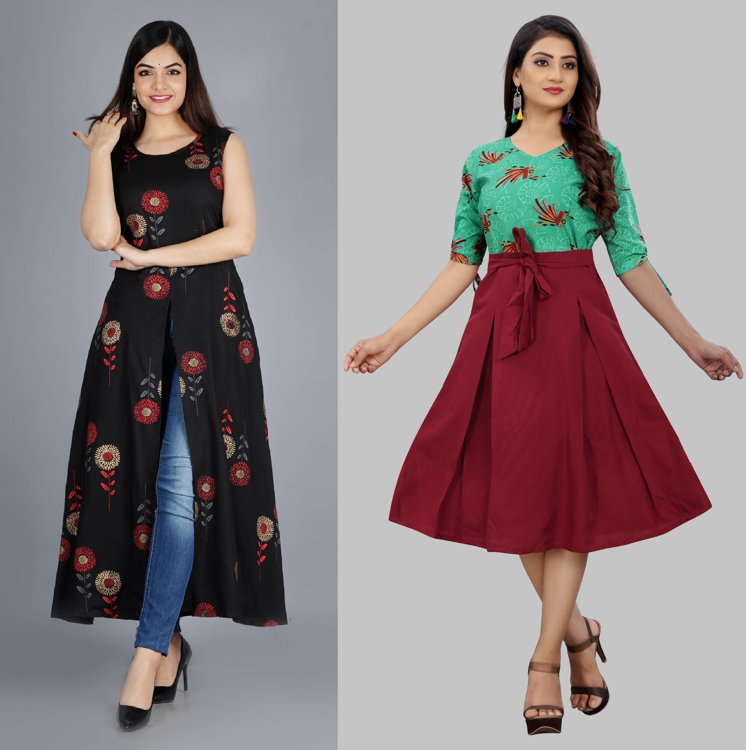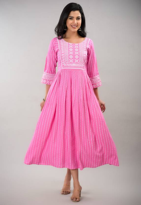 JFT Jaipur Fabtex Women Printed A-line Kurta (Pink)