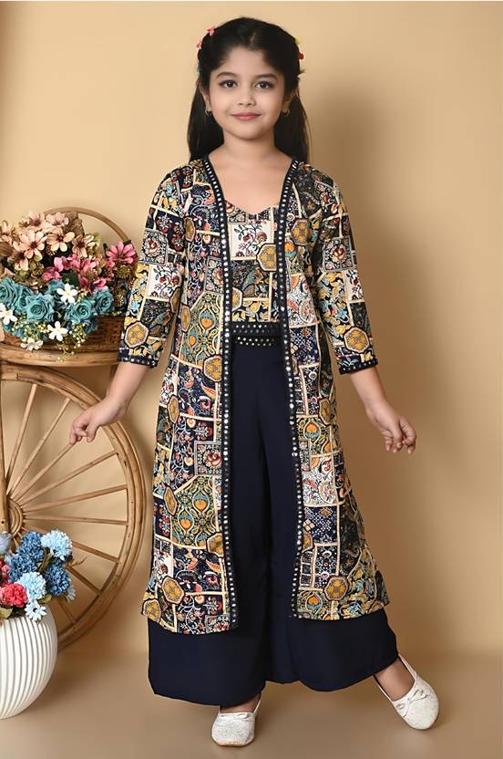 Beautiful comfy ethenic kurta palazzo and jacket set for girls