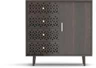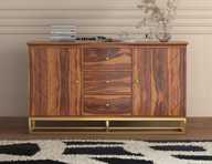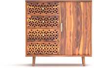 Jh Decore Solid Sheesham Wood CNC Design Sideboard/ Cabinet For Living Room || Solid Wood Free Standing Sideboard (Finish Color - Dark Walnut Finish, Door Type- Hinged, Pre-assembled)