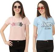 Women and girls can wear this trendy party top. This elegant top is designed with a fancy pattern and lovely colours for everyday and informal wear. This fashionable collection from 2023 features designer clothes that give you a luxurious appearance. modern western women's tops for girls for 2023 combination T-shirt red, black, and blue Peach t-shirt jeans fancy new designer pattern lovely appearance sale promotion low cost college party event everyday casual everyday wear plain cotton Lycra Small, medium, large, and extra-large sizes are available in a half-sleeve, one-piece cropped summertime style. Hot stylish online cropped t-shirts with basic denim and short bell indo apparels