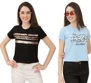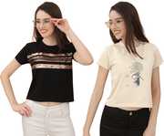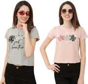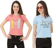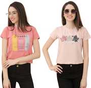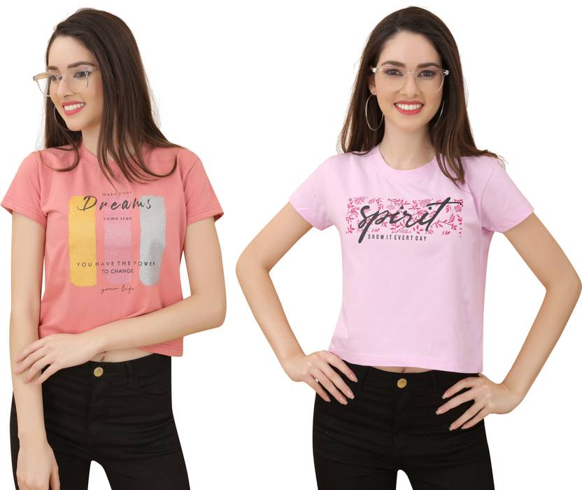 Women and girls can wear this trendy party top. This elegant top is designed with a fancy pattern and lovely colours for everyday and informal wear. This fashionable collection from 2023 features designer clothes that give you a luxurious appearance. modern western women's tops for girls for 2023 combination T-shirt red, black, and blue Peach t-shirt jeans fancy new designer pattern lovely appearance sale promotion low cost college party event everyday casual everyday wear plain cotton Lycra Small, medium, large, and extra-large sizes are available in a half-sleeve, one-piece cropped summertime style. Hot stylish online cropped t-shirts with basic denim and short bell indo apparels
