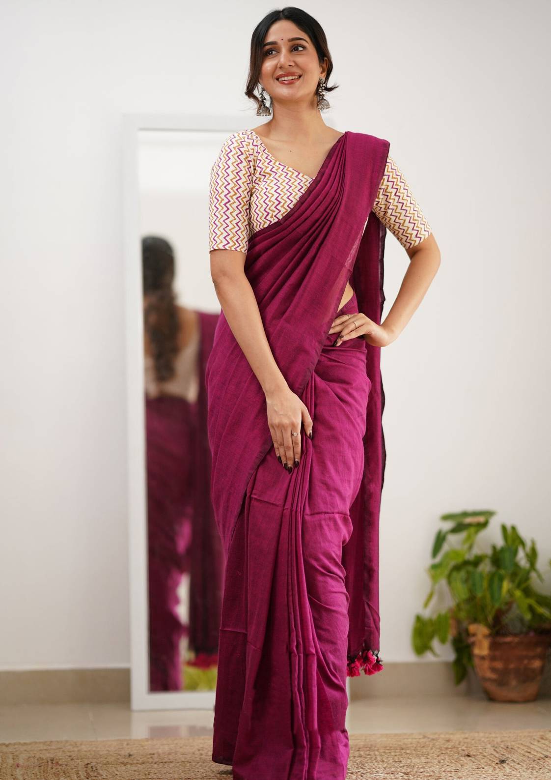 around the body or styled with a Modern Twist, this cotton saree is sure to Turn Heads and inspire Admiration.