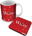 Jhingalala Wifey Printed with Coaster Combo Gift Set for Wife, Wifey, Patni For Birthday, Anniversary, Valentine's Day (JD1926) Ceramic Coffee Mug (325 ml, Pack of 2)