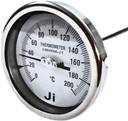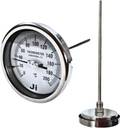 "Ji" Japsin Instrumentation Temperature Gauge, Bimetal Dial Thermometer, 4" Dial, Range 0 to 200°C, 12" Stem X 10 mm OD, Direct Mounting Back Entry, 1/2" BSP (M) Connection, Complete SS Body