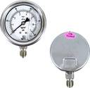 "Ji" Japsin Instrumentation Industrial Glycerin Filled Pressure Gauge, 2 1/2" Dial, Range 0 to 7 Kg/Cm2 with Dual Scale of 100 PSI, Direct Mounting Bottom Entry, 1/4" BSP (M) Connection, SS Material