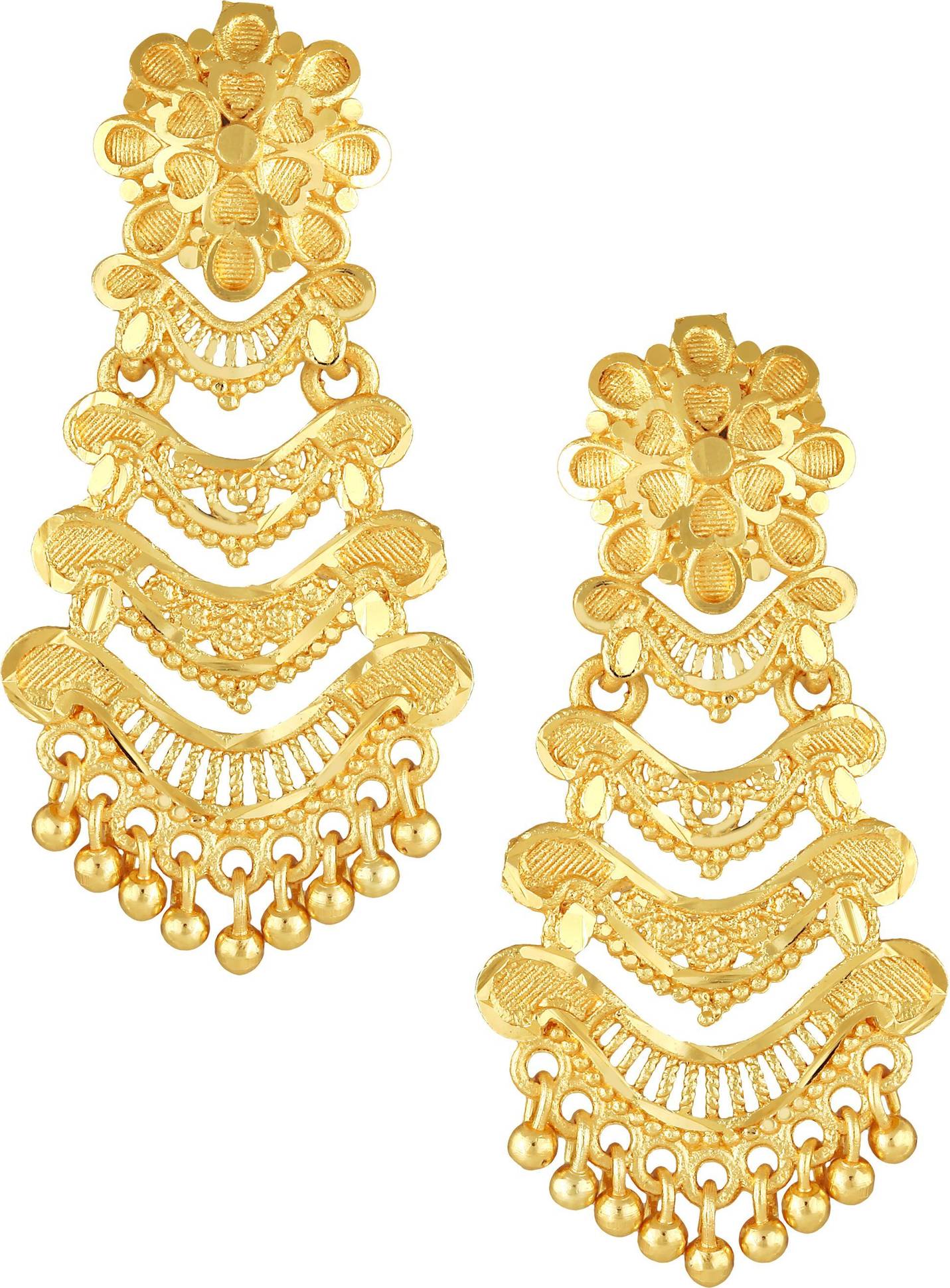 Chains have a fine micro box link structure, giving a subtle shimmer, Symmetrical pendant layout with balanced floral detailing