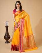 At graceful threads, we take pride in the artistry and precision that goes into every thread. Our sarees showcase impeccable craftsmanship, intricate detailing, and luxurious fabrics that ensure you stand out with grace and poise.Whether you are attending a traditional indian function, a cultural event, or just want to add a touch of elegance to your everyday wear, this saree can be a perfect choice. It's not just a piece of clothing; it's a symbol of grace, tradition, and timeless beauty.