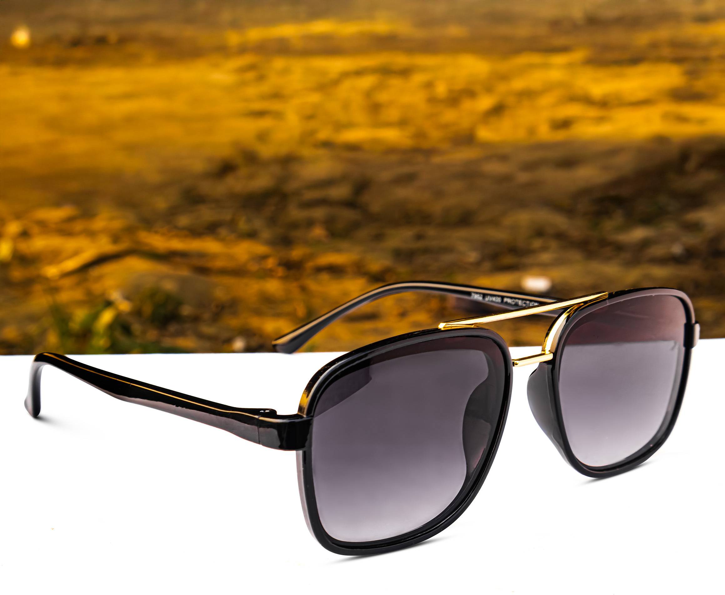 jiebo Rectangular Sunglasses (For Men, Black)