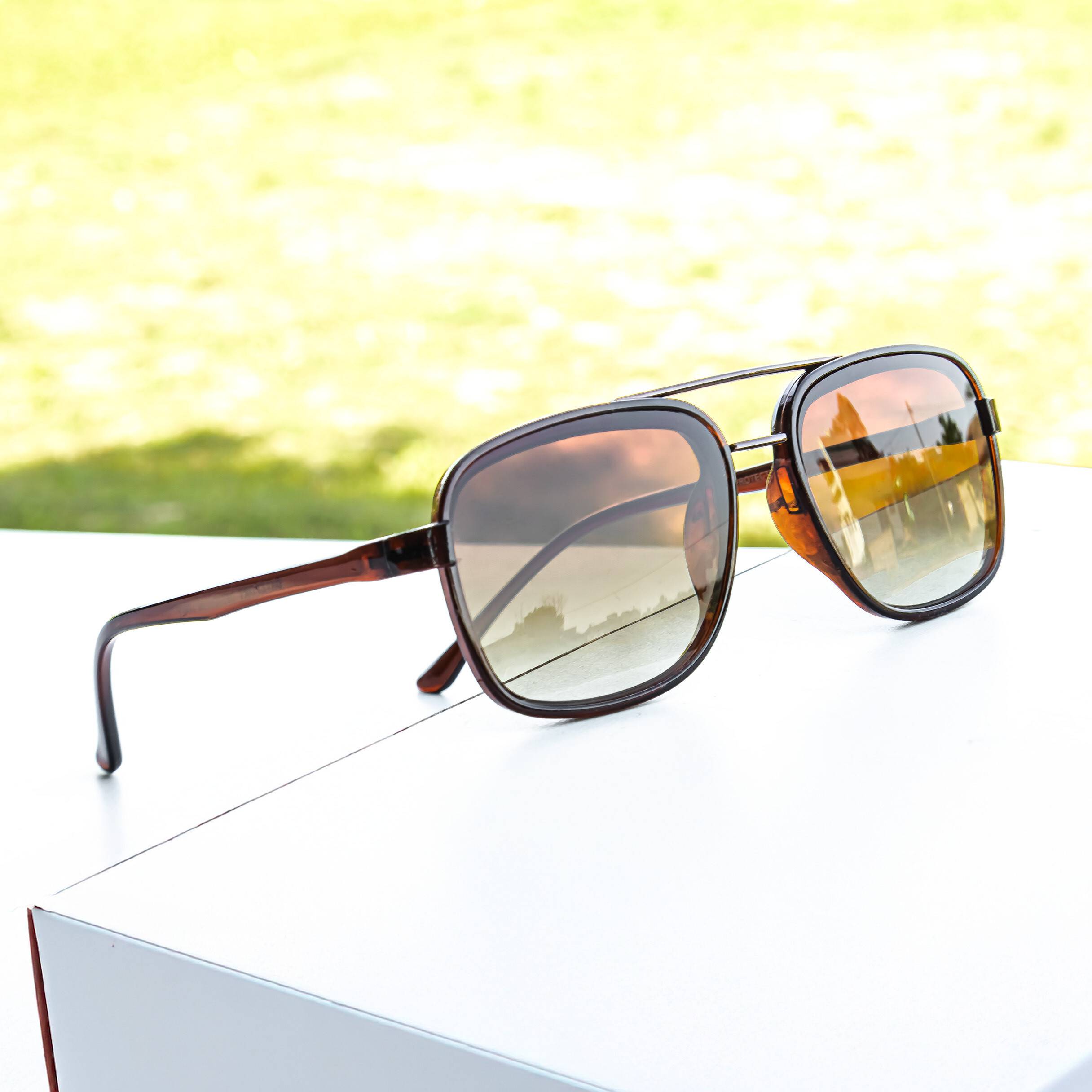 jiebo Rectangular Sunglasses (For Men, Brown)