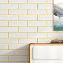 starting with the corners. Then use a cleaning product to remove the excess glue left by the peel-and-stick tiles.