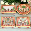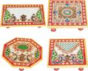Jin Parshav Handicraft(6 x 4) & (4 x 4)Inch Floral Peacock design God Pooja Mandir Patta For Marble All Purpose Chowki (Multicolor, Pack of 4)