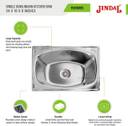 Introducing the JINDAL Single Bowl Kitchen Sink, a practical and stylish addition to any kitchen space. Crafted from durable Premium stainless steel and boasting a spacious 24x18x9-inch design, this sink offers ample room for all your kitchen tasks, from washing dishes to food preparation. Its sleek and modern appearance adds a touch of elegance to any kitchen decor, making it a versatile choice for both residential and commercial settings. Installation is a breeze with all the necessary hardware included, ensuring quick and hassle-free setup.Made with JINDAL's 33 years of industry experience, you can trust in the quality and reliability of this kitchen essential. Whether you're a professional chef or a home cook, the JINDAL Single Bowl Kitchen Sink is sure to enhance your culinary experience.