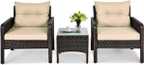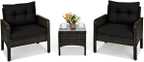 Wide Range of Applications: Made of all-weather PE rattan, this 3-piece wicker furniture set is suitable for both indoor and outdoor use. With Simple and generous appearance, it is ideal for patio, front porch, poolside, backyard and many other spaces.