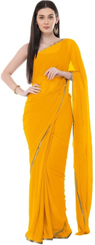 SainiVastra Solid/Plain Bollywood Chiffon Saree (Yellow)