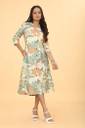Women A-line Green Knee Length Dress