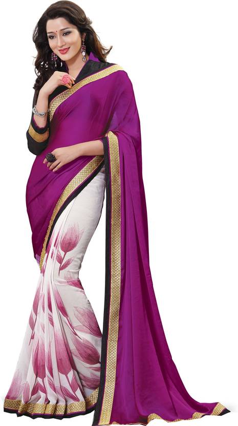 Jiya Self Design, Printed Bollywood Chiffon Saree (Purple, White)